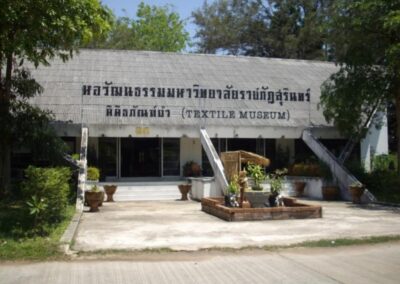 การพัฒนางานวิจัยเพื่อส่งเสริมการผลิตและพัฒนาเศรษฐกิจรากฐานก่อให้เกิดการพัฒนาท้องถิ่นและประเทศ ซึ่งเกิดจากการร่วมพัฒนาองค์ความรู้ (Body of Knowledge) ระหว่างมหาวิทยาลัยราชภัฏสุรินทร์และชุมชนต่าง ๆ ของจังหวัดสุรินทร์ จังหวัดสุรินทร์มีจำนวนครัวเรือนที่เกี่ยวข้องผลิตผ้าไหมทั้งต้นน้ำ กลางน้ำ และปลายน้ำมากที่สุดในประเทศไทย ผ้าไหมสุรินทร์มีชื่อเสียงอย่างมากทั้งในระดับประเทศและระดับโลก (National and Global Reputation of Surin Silk) มาอย่างยาวนาน ดังคำขวัญจังหวัดสุรินทร์ “สุรินทร์ถิ่นช้างใหญ่ ผ้าไหมงาม ประคำสวย ร่ำรวยปราสาท ผักกาดหวาน ข้าวสารหอม งามพร้อมวัฒนธรรม” มหาวิทยาลัยราชภัฏสุรินทร์ได้ร่วมวิจัยและพัฒนาผ้าไหมสุรินทร์มาอย่างยาวนาน จนขึ้นชื่อ “ผ้าไหมสุรินทร์ ร้อยสีพันลาย” และมีพิพิธภัณฑ์ผ้า (Textile Museum) ภายในมหาวิทยาลัยราชภัฏสุรินทร์