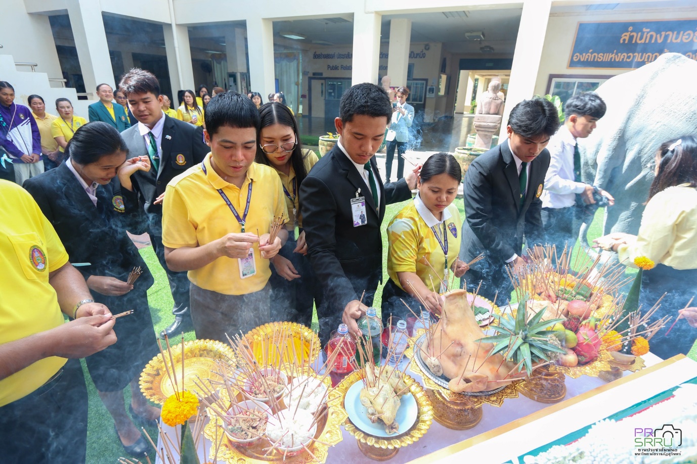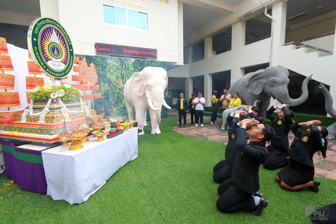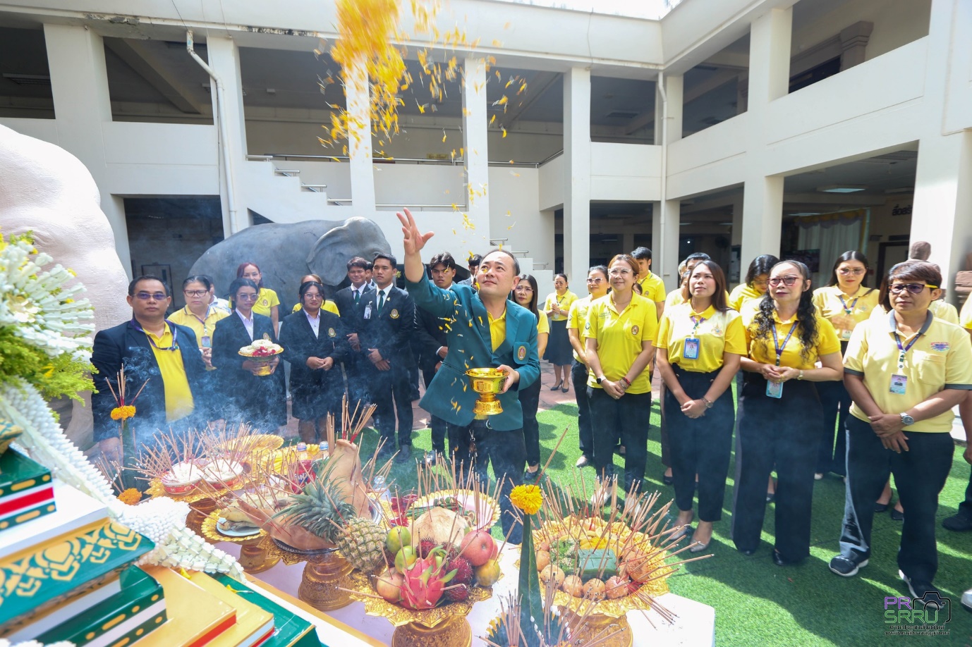 17 ก.ค. 2568 เวลา 09.09 น. กองพัฒนานักศึกษา ร่วมกับ องค์การนักศึกษาภาคปกติ มหาวิทยาลัยราชภัฏสุรินทร์ จัดพิธีบวงสรวงตราพระราชลัญจกร มหาวิทยาลัยราชภัฏสุรินทร์ เพื่อนำไปประกอบพิธีอัญเชิญตราพระราชลัญจกร และพิธีไหว้ครู สู่ขวัญน้องใหม่ ประจำปีการศึกษา 2568 ในช่วงเย็นวันนี้ที่สนามกีฬาศรีณรงค์ จังหวัดสุรินทร์ ในการนี้ รองศาสตราจารย์ ดร.ฉลอง สุขทอง อธิการบดี มอบหมายให้ รองศาสตราจารย์ ดร.อำนวย วัฒนกรสิริ รองอธิการบดีฝ่ายเทคโนโลยีและการสื่อสารองค์กร เป็นประธานในการประกอบพิธีดังกล่าว ณ ลานคชสราญ ชั้น 1 อาคารสำนักงานอธิการบดี (อาคาร 31) มหาวิทยาลัยราชภัฏสุรินทร์