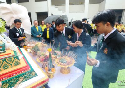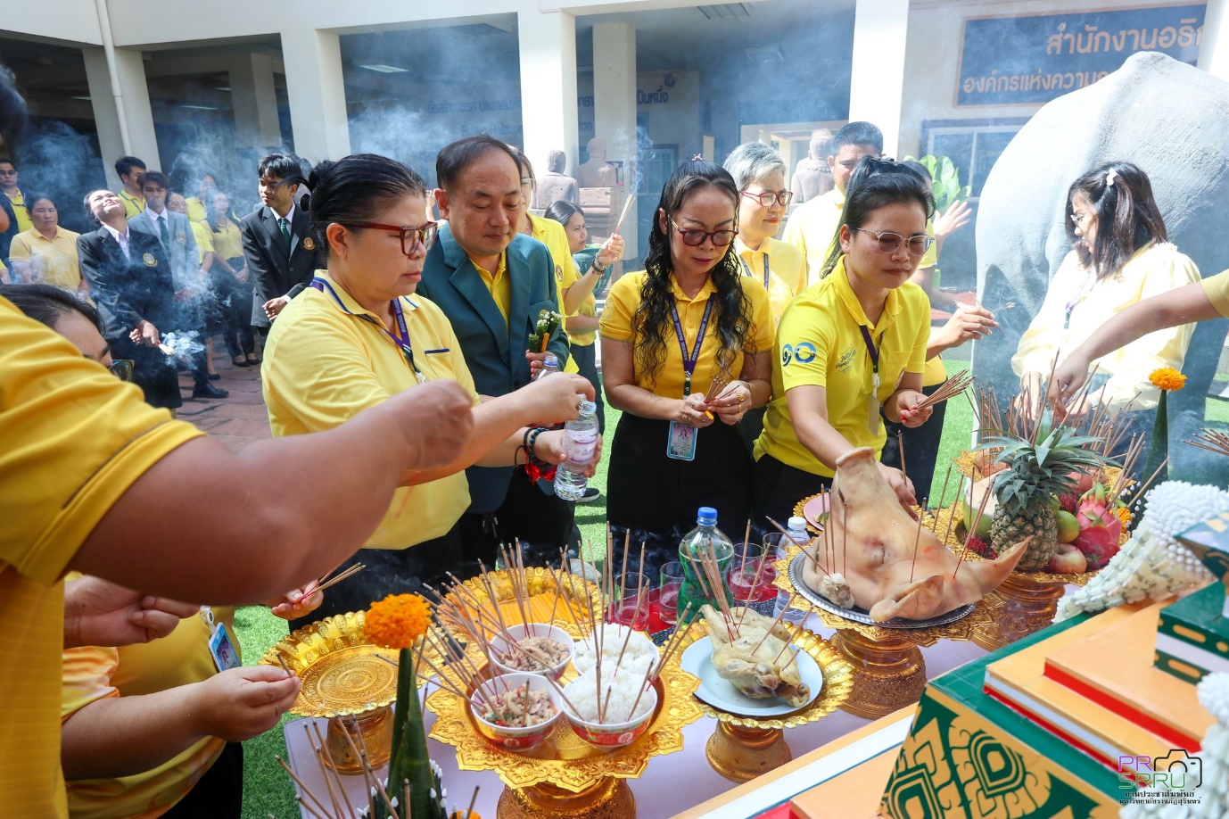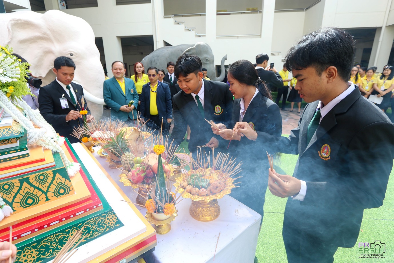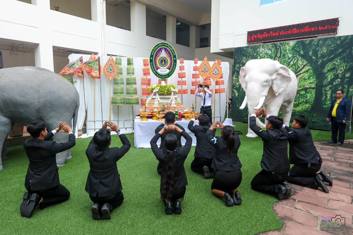 17 ก.ค. 2568 เวลา 09.09 น. กองพัฒนานักศึกษา ร่วมกับ องค์การนักศึกษาภาคปกติ มหาวิทยาลัยราชภัฏสุรินทร์ จัดพิธีบวงสรวงตราพระราชลัญจกร มหาวิทยาลัยราชภัฏสุรินทร์ เพื่อนำไปประกอบพิธีอัญเชิญตราพระราชลัญจกร และพิธีไหว้ครู สู่ขวัญน้องใหม่ ประจำปีการศึกษา 2568 ในช่วงเย็นวันนี้ที่สนามกีฬาศรีณรงค์ จังหวัดสุรินทร์ ในการนี้ รองศาสตราจารย์ ดร.ฉลอง สุขทอง อธิการบดี มอบหมายให้ รองศาสตราจารย์ ดร.อำนวย วัฒนกรสิริ รองอธิการบดีฝ่ายเทคโนโลยีและการสื่อสารองค์กร เป็นประธานในการประกอบพิธีดังกล่าว ณ ลานคชสราญ ชั้น 1 อาคารสำนักงานอธิการบดี (อาคาร 31) มหาวิทยาลัยราชภัฏสุรินทร์