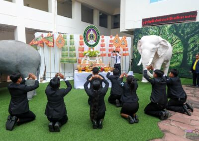 พิธีบวงสรวงตราพระราชลัญจกร มหาวิทยาลัยราชภัฏสุรินทร์ ประจำปี 2568 จัดขึ้นเพื่อแสดงความเคารพและสำนึกในพระมหากรุณาธิคุณของพระบาทสมเด็จพระมหาภูมิพลอดุลยเดชมหาราช บรมนาถบพิตร (พระเจ้าอยู่หัว รัชกาลที่ 9) ก่อให้เกิดการพัฒนาที่ยั่งยืนในข้อที่ 11. เมืองและถิ่นฐานมนุษย์อย่างยั่งยืน (Sustainable Cities and Communities) 16. สังคมแห่งสันติภาพ ยุติธรรม และเข้มแข็ง (Peace, Justice and Strong Institutions) และ 17. ความร่วมมือเพื่อการพัฒนาที่ยั่งยืน (Partnerships for the Goals)