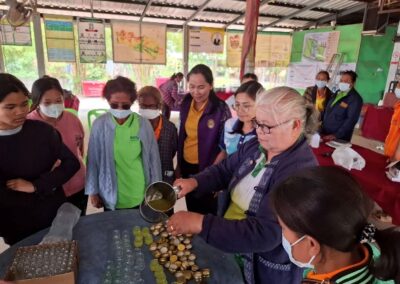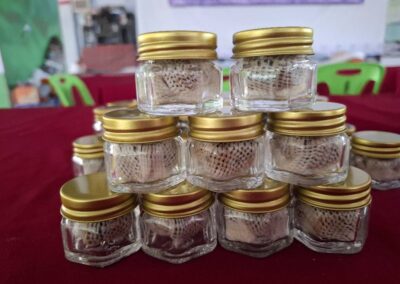 กิจกรรมที่ 4 การส่งเสริมการพัฒนาผลิตภัณฑ์และการตลาดสมุนไพรสู่การเพิ่มมูลค่า วันที่จัดโครงการวันที่ 25-26 เดือนมีนาคม พ.ศ. 2568 ผลผลิตที่ชุมชุมนำไปใช้ประโยชน์ ได้แก่ โลโก้ผลิตภัณฑ์ยาหม่องสมุนไพร 1 แบบ และบรรจุภัณฑ์ยาหม่อง 1 แบบ, โลโก้ผลิตภัณฑ์น้ำมันไพล 1 แบบ และบรรจุภัณฑ์น้ำมันไพล 1 แบบ, โลโก้ผลิตภัณฑ์ยาดมสมุนไพร 1 แบบ และบรรจุภัณฑ์ยาดมสมุนไพร 1 แบบ