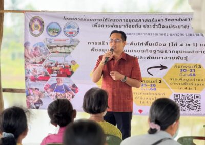 - สร้างมูลค่าเพิ่มไก่พื้นเมือง: กิจกรรมสุดท้ายคือการถ่ายทอดเทคนิคและกลยุทธ์ในการพัฒนาสายพันธุ์ การคัดเลือก และการตลาด เพื่อเพิ่มมูลค่าให้กับ “ไก่ 4 in 1” ทำให้เกษตรกรสามารถเปลี่ยนจากผู้เลี้ยงเป็น “นักพัฒนาสายพันธุ์” ที่สร้างรายได้สูงขึ้น