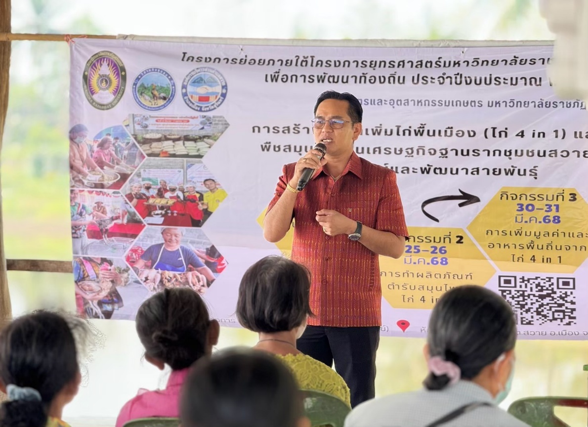 “ไก่ชน” ในมุมมองของคนทั่วไปอาจเป็นเพียงเกมกีฬา แต่สำหรับชุมชนตำบลสวาย จังหวัดสุรินทร์ และคณะเกษตรและอุตสาหกรรมเกษตร มหาวิทยาลัยราชภัฏสุรินทร์ นี่คือ “สัตว์เศรษฐกิจ” ที่มีมูลค่ามหาศาลและเป็นศูนย์กลางของระบบนิเวศทางอาชีพที่หลากหลาย โครงการ