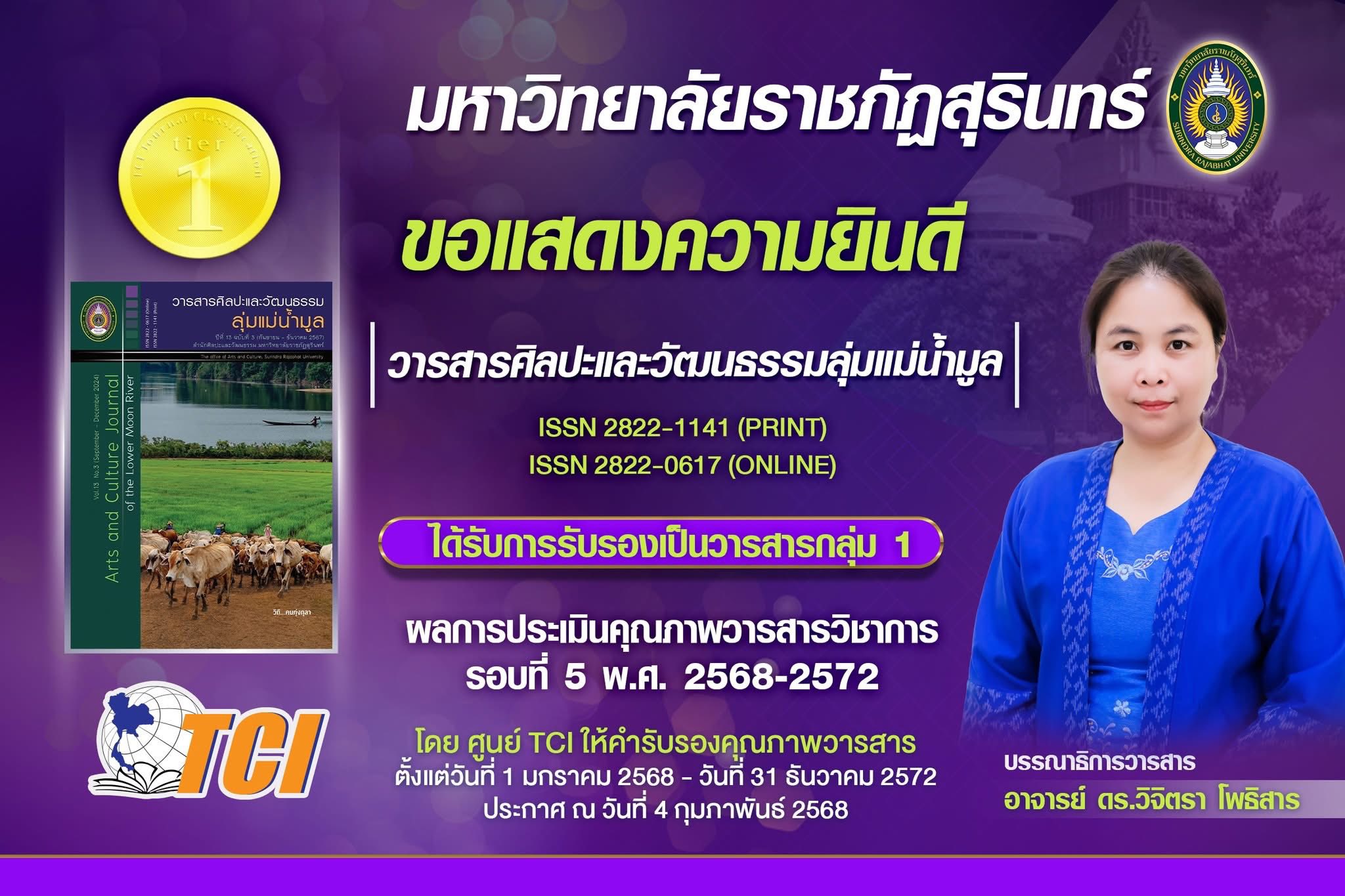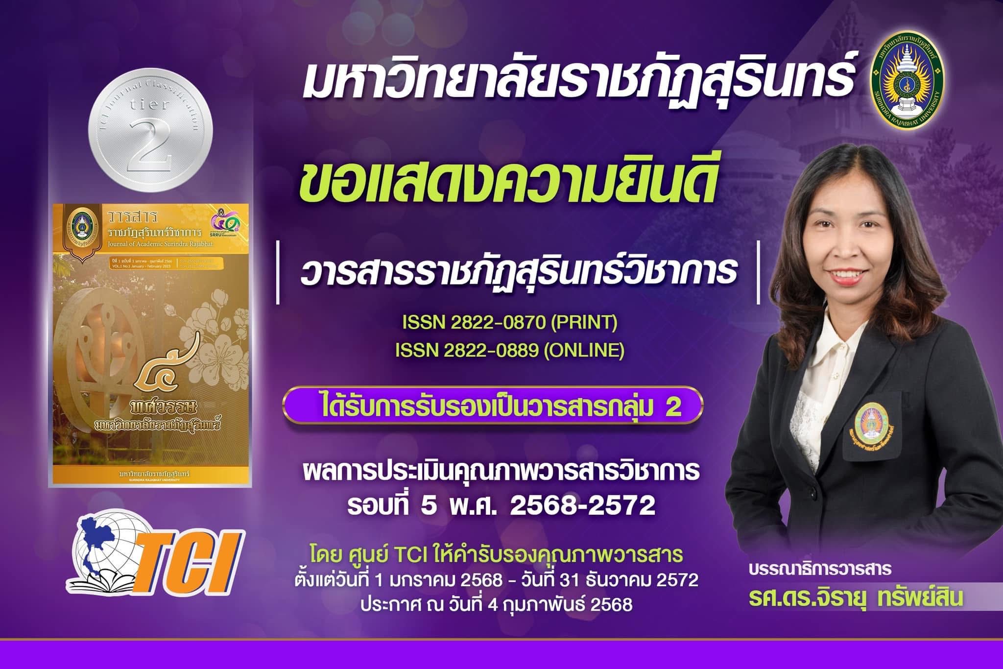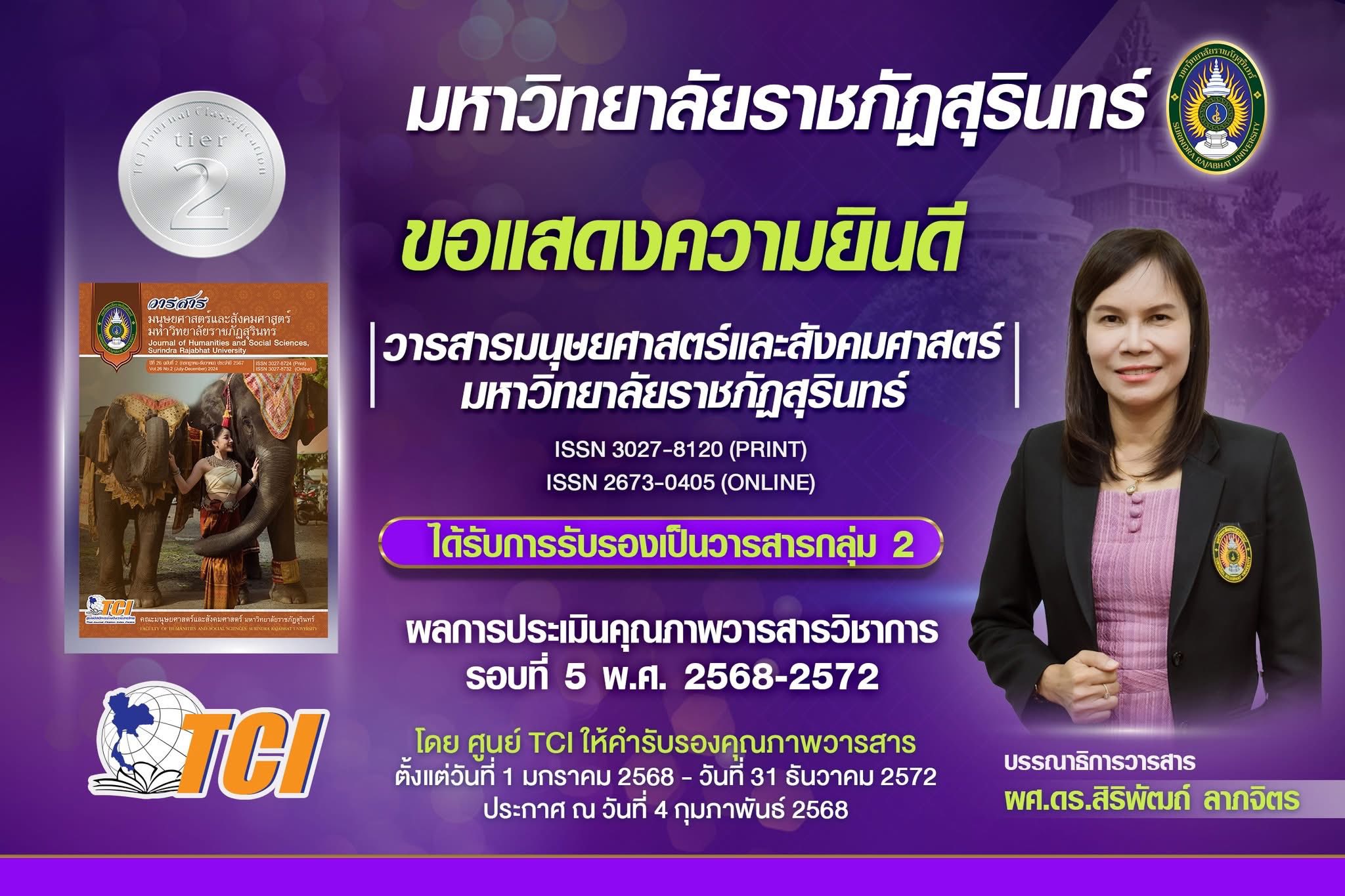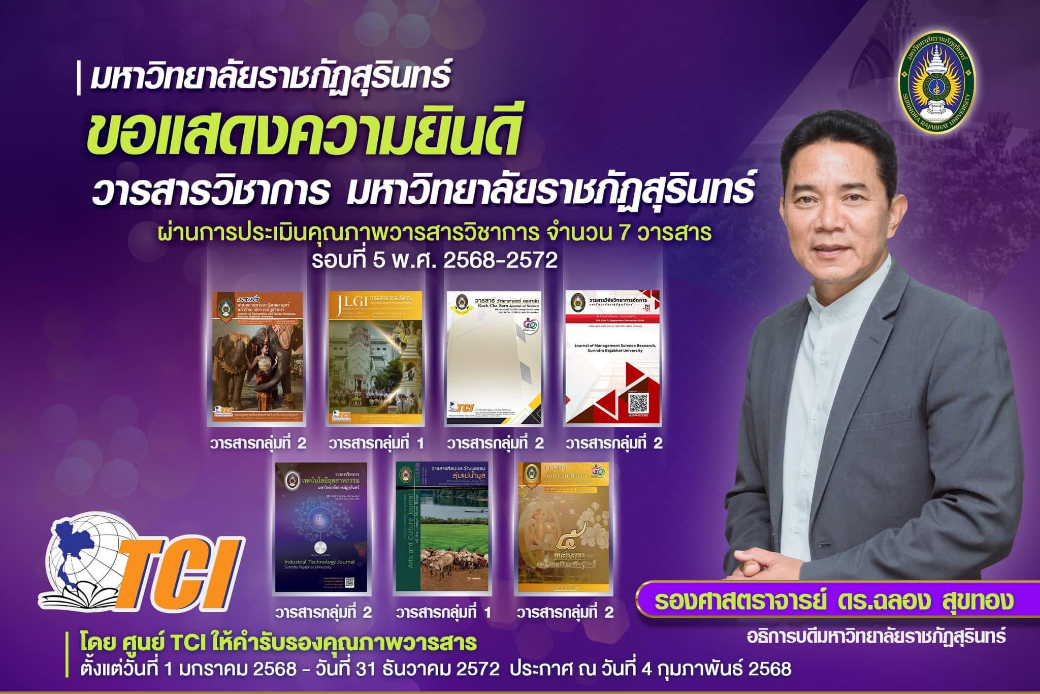 มหาวิทยาลัยราชภัฏสุรินทร์ มีวารสารที่ได้รับการรับรองคุณภาพจาก ฐานข้อมูล TCI (Thai-Journal Citation Index Centre)