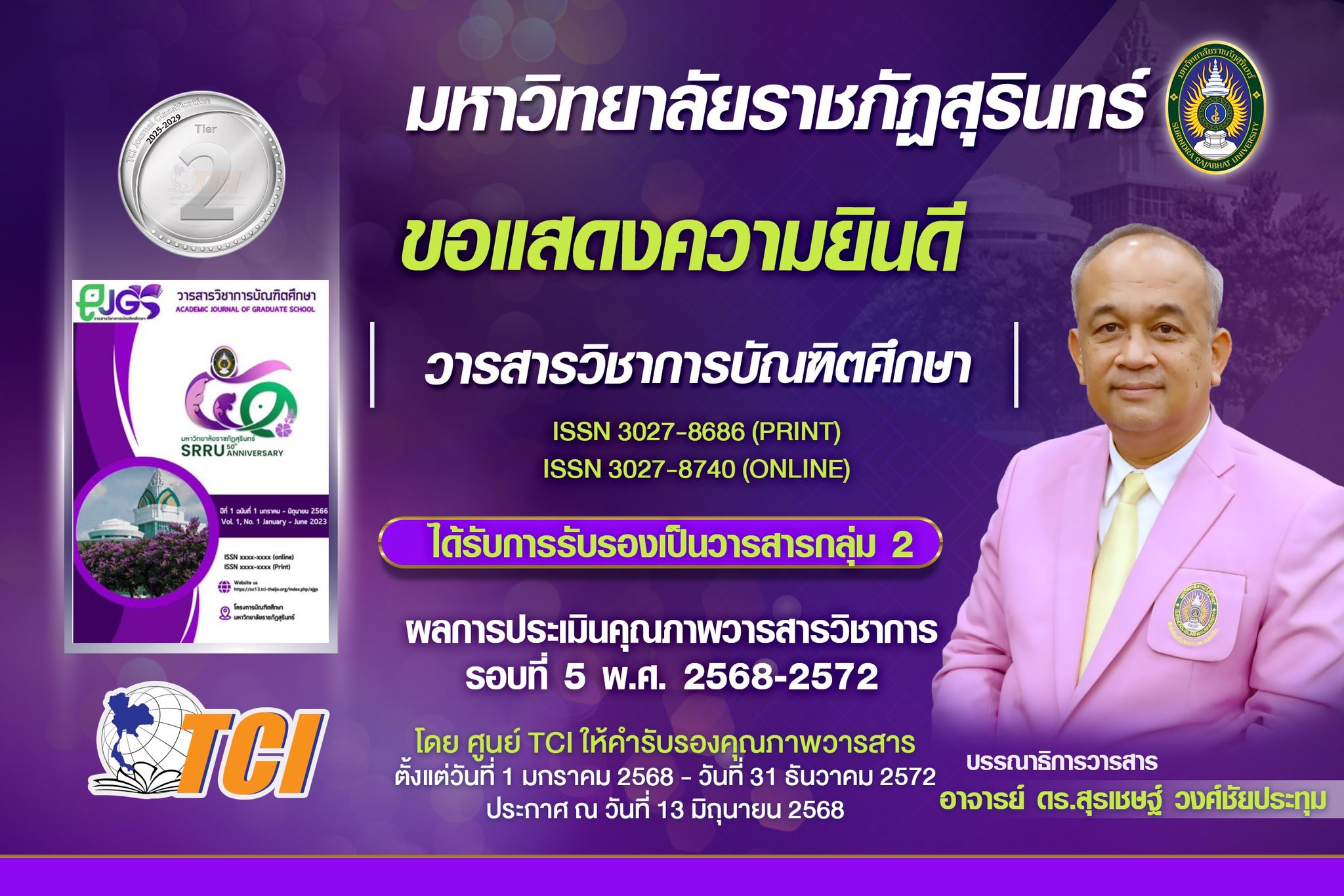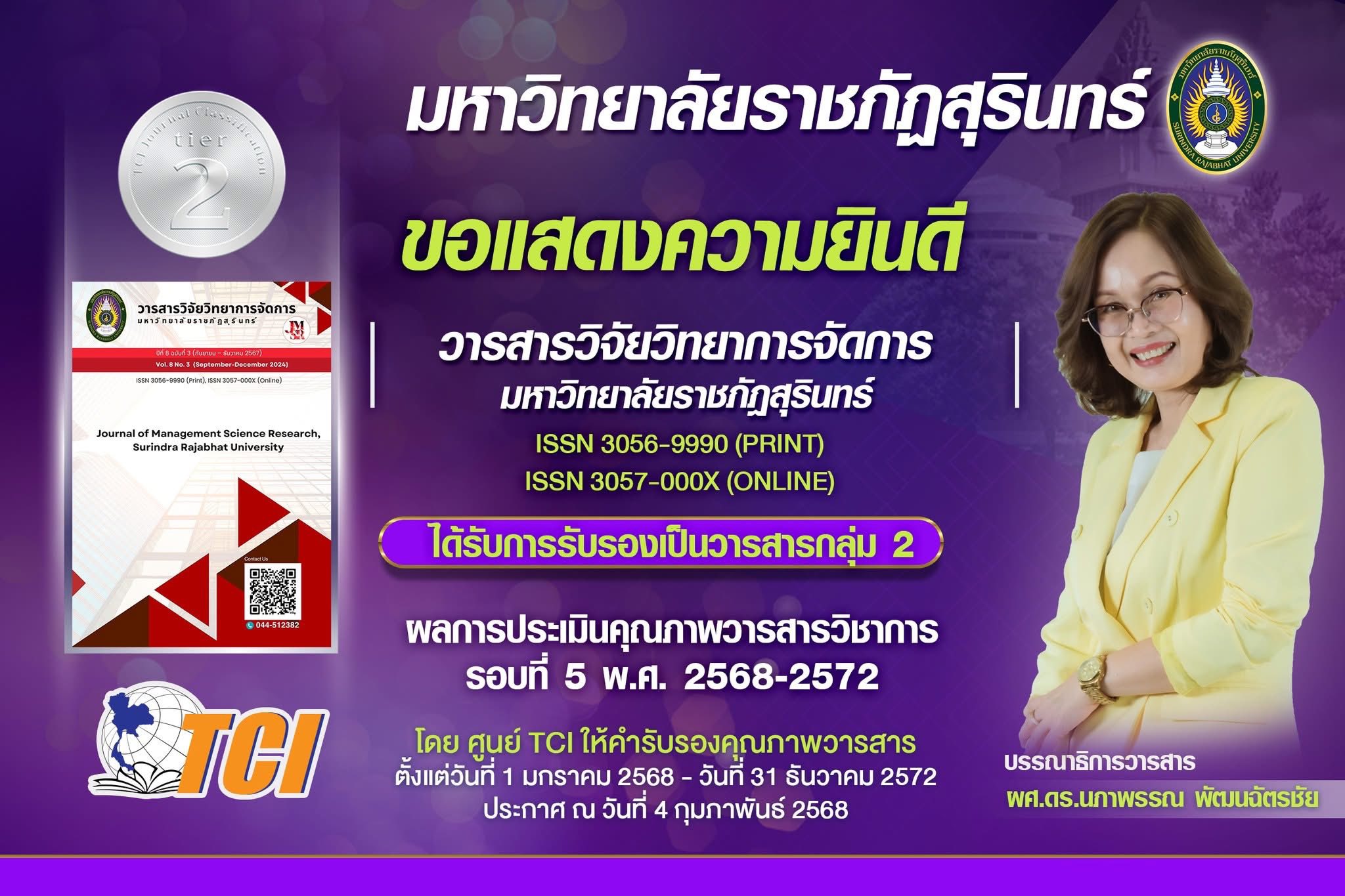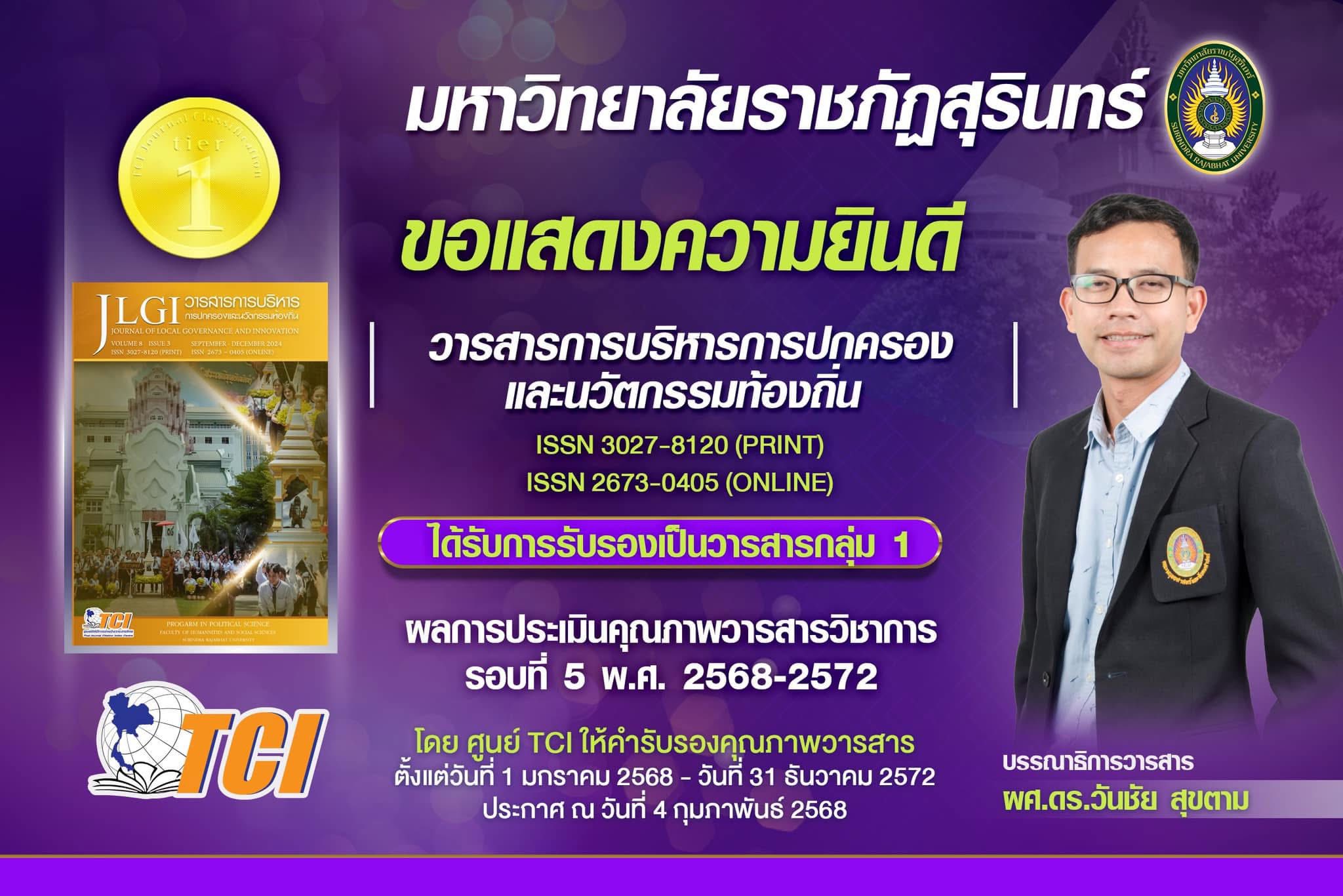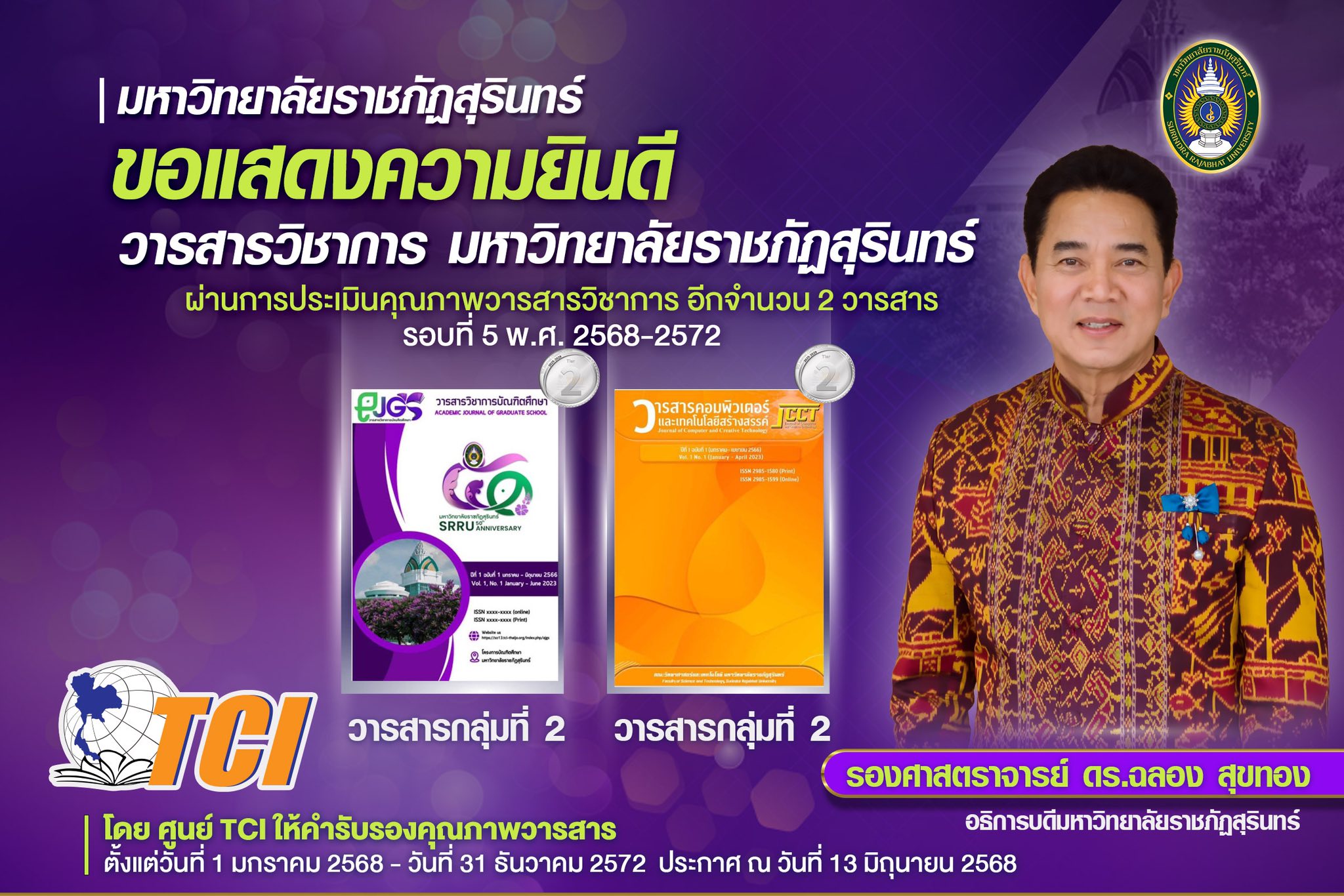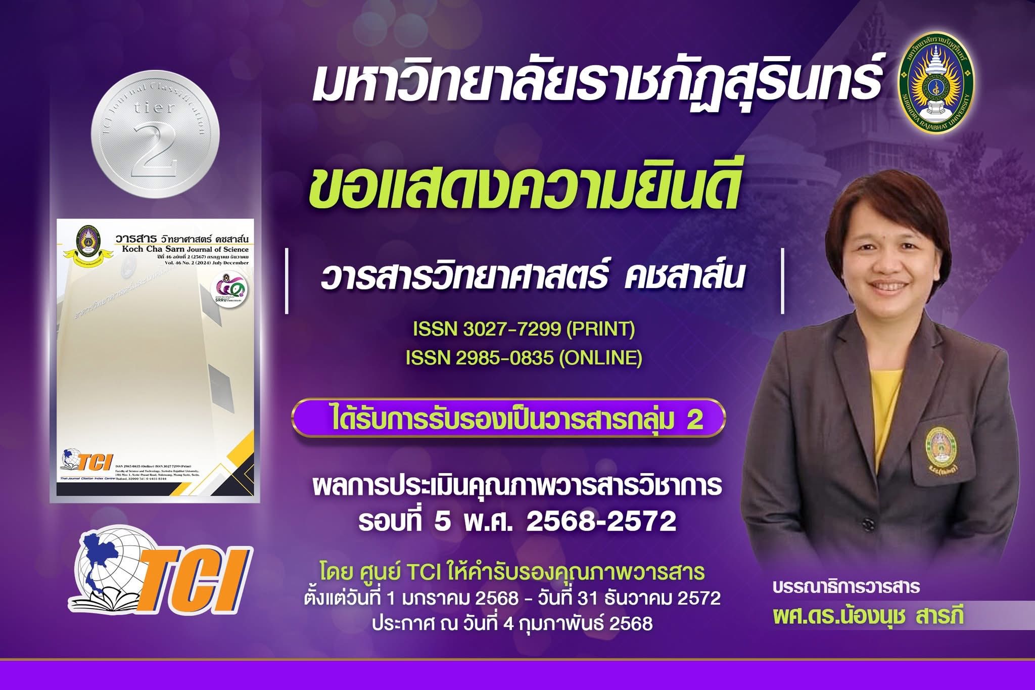 มหาวิทยาลัยราชภัฏสุรินทร์ มีวารสารที่ได้รับการรับรองคุณภาพจาก ฐานข้อมูล TCI (Thai-Journal Citation Index Centre)
