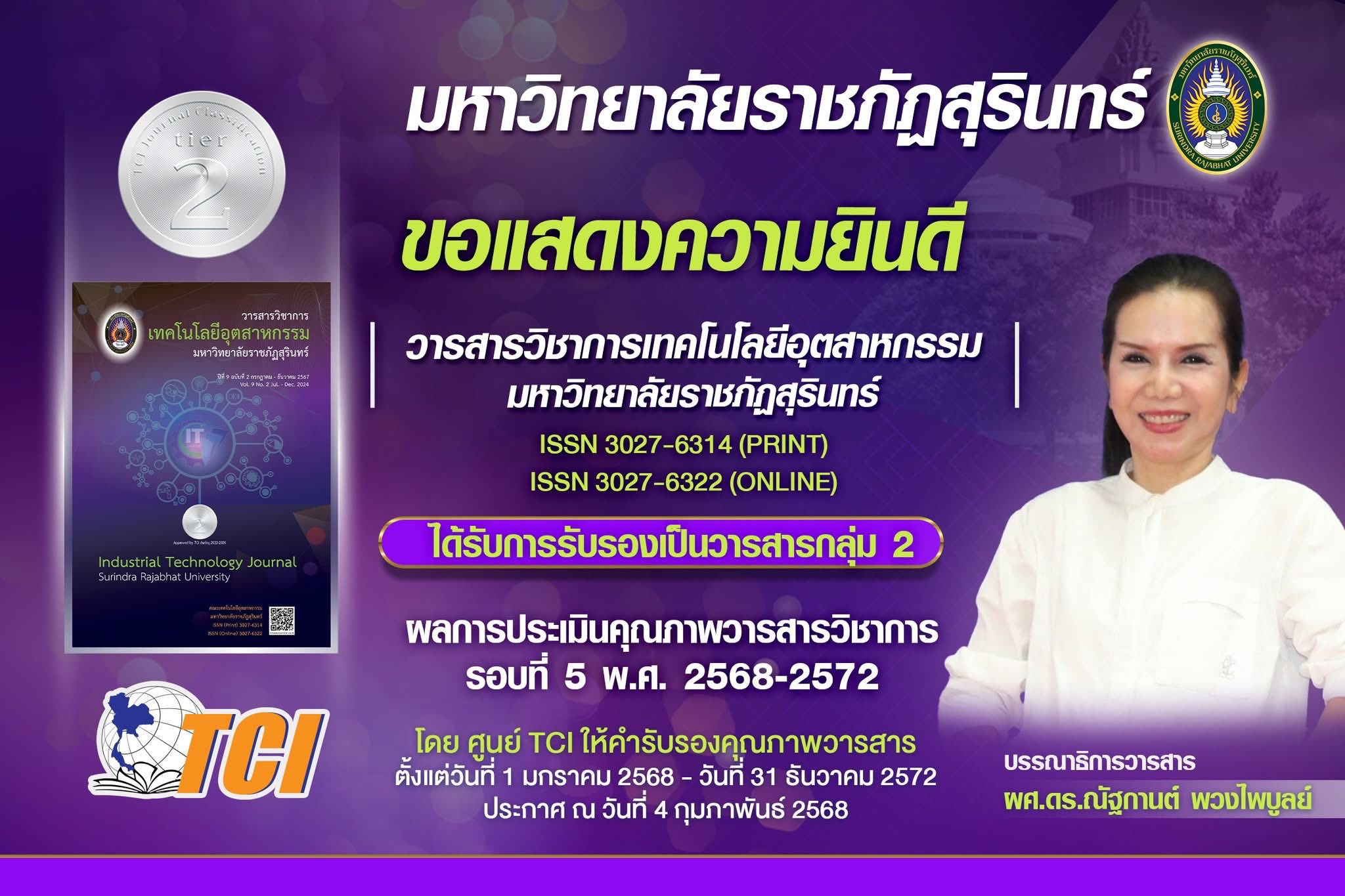 วารสารวิชาการเทคโนโลยีอุตสาหกรรม มหาวิทยาลัยราชภัฏสุรินทร์